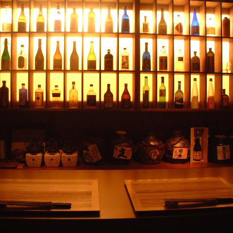 カウンターにはずらりとたくさんの焼酎が並んでいて、見ているだけでも楽しい。