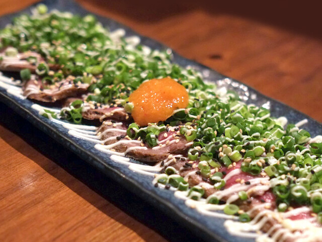 まずはビールで乾杯し、前菜としてクリームチーズを注文。濃厚なチーズのコクと、ほんのり甘みのあるソースが絶妙にマッチして、最初の一品にぴったりでした。続いて鶏のたたきをいた...