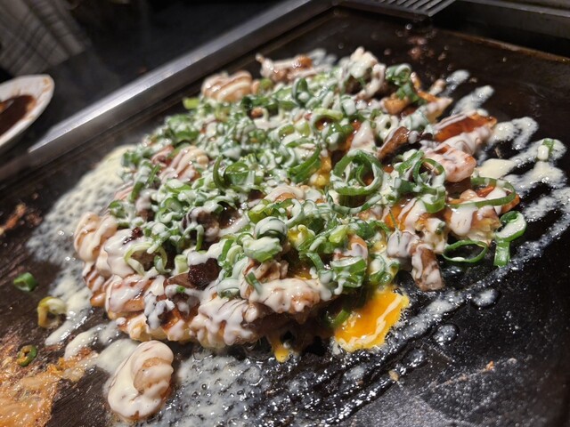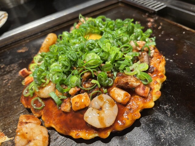 歌舞伎町の中心エリアに位置する老舗のお好み焼き店。店内は鉄板を囲むスタイルで、焼き上がる音や香りまで楽しめる空間になっている。