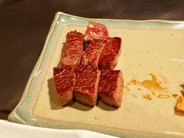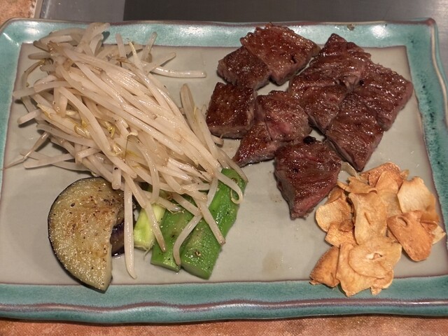 昔、一回だけ来たことある老舗の鉄板焼き屋さん。創業53年だそうです。ちょっと古びた椅子、ずれた鉄板、トイレ等53年の月日を感じます。完全に味で勝負の店です。 特選黒毛和牛(A5)ペアセット、鮑ステーキ付きを注文。肉200グラムと大型鮑ステーキをシェアする感じです。 前菜が出た後に鮑ステーキ、... 詳細を見る