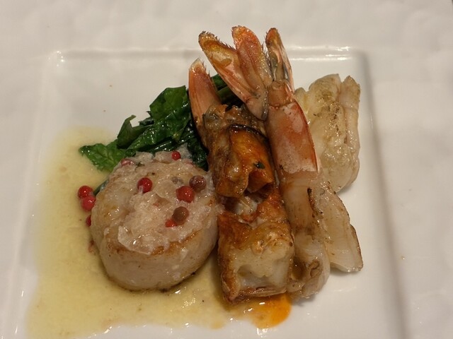 嫁さんと一緒に食事なので、今夜はココ‼️ そう!知る人ぞ知るパンドラですよ 少し早めの、クリスマスイブイブ18:00に到着しました まだ、早いのか空いてます でも、お店の人にお聞きしたら、明日のイブは、満員だそうです 早速、リーズナブルなお二人様用ディナーセット(ガーリックライス)15,000をオーダーしました 先ずは、サラダ…美味しいです 次は、海鮮鉄板焼き…ホタテ、ヤ... 詳細を見る