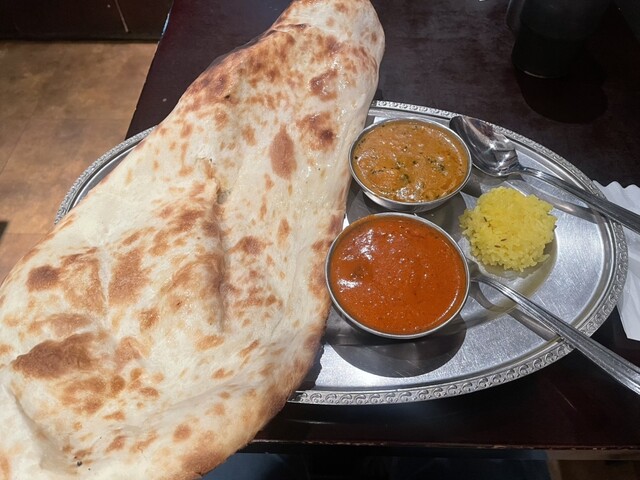 しかもサイズもとにかく大きくて、こんなおっきいチーズナン初めて見たよ!!!1切れでお腹いっぱいになるほどのボリューム!2人でナン1つをシェアしてもちょうどいいくらい!