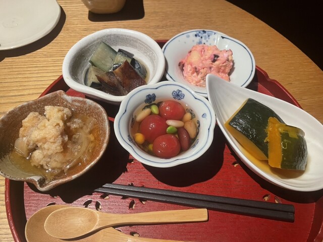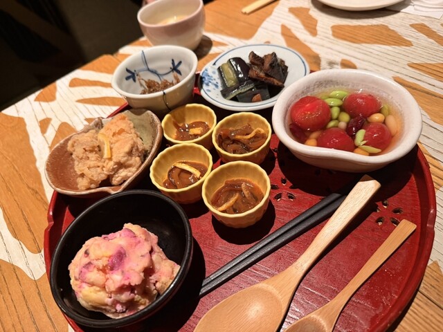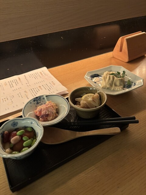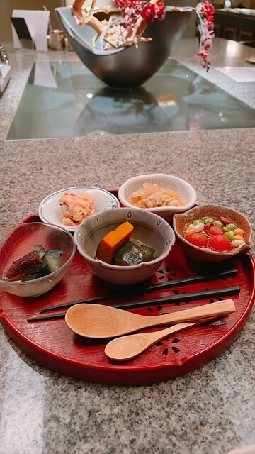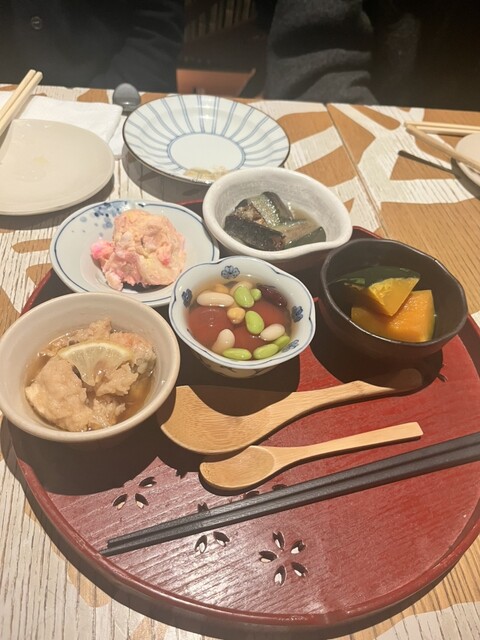 お店の全体の雰囲気はよかったですが、テーブルは席同士が近すぎて隣の会話が気に入りました。コースで頼みましたが前菜の小鉢すらとりわけ式で、ここだけでも個別にきたら嬉しかったなと思います。ボリュームは多か...