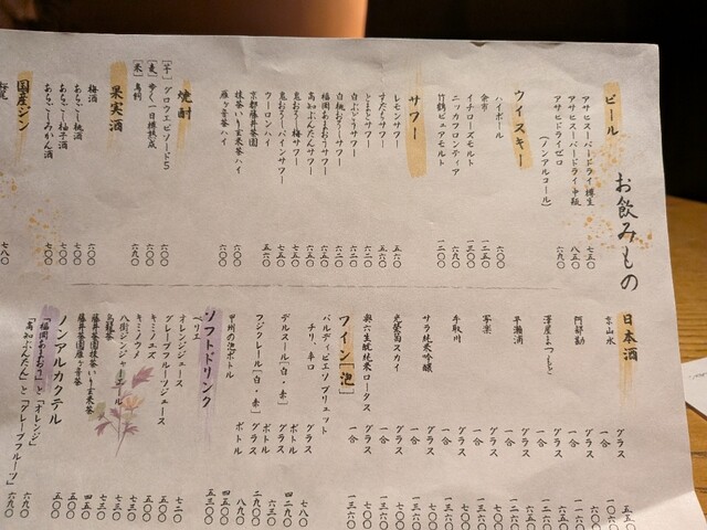 | ドリンク | 日本酒あり、焼酎あり、ワインあり、カクテルあり、日本酒にこだわる |