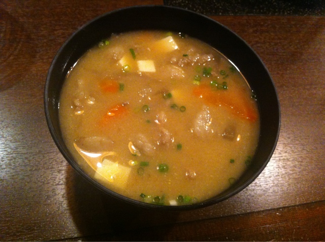 豚汁は、たっぷりの野菜と豚肉が入り、それらから出た出汁と濃いめの味噌があいまって、これまた大変美味しい。
