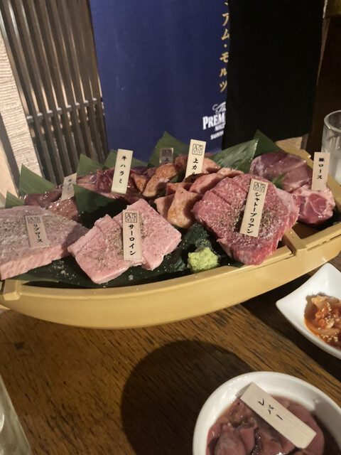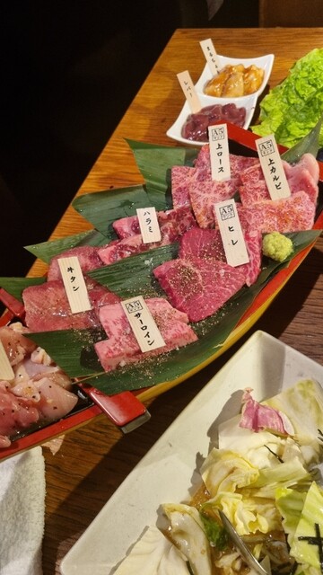 ・アラカルト料理 ・A5ランク盛り合わせの、カイノミとかはおいしい! ・一方、タンはかなり薄いし、ホルモンも量が少な、トータルで見たらそんなにコスパ良くない。 ・肉以外のメニ... 詳細を見る