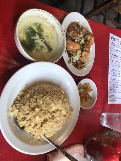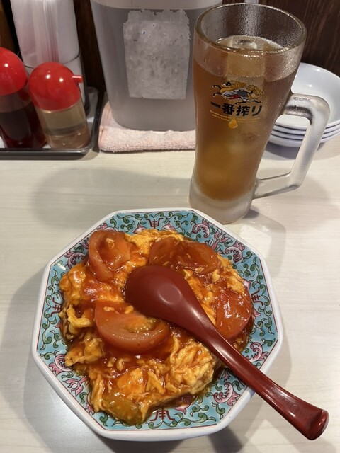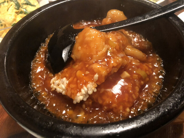 焼き小籠包、トマトと卵炒め、黒酢の酢豚と烏龍...