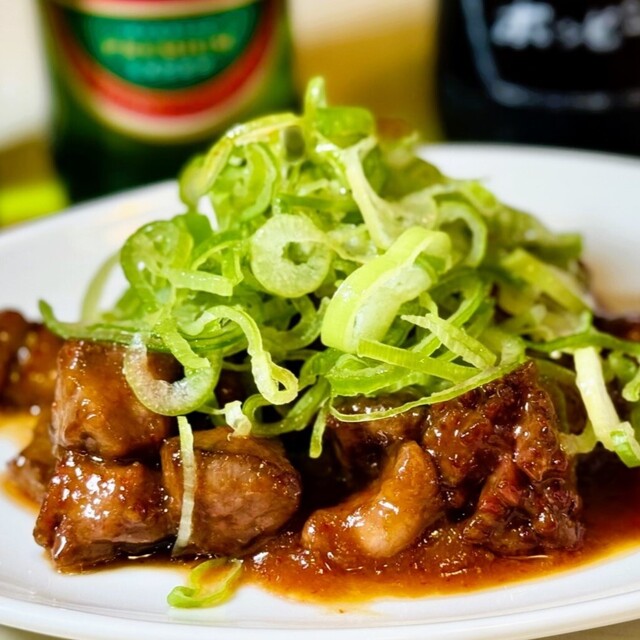 旨辛で、ネギいっぱいの純ハツ炒め (by お店)