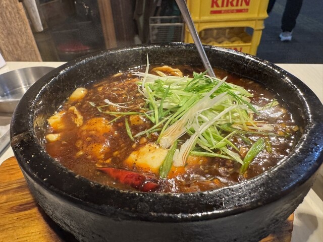 石焼きでグツグツ!麻辣水餃子 (by お店)