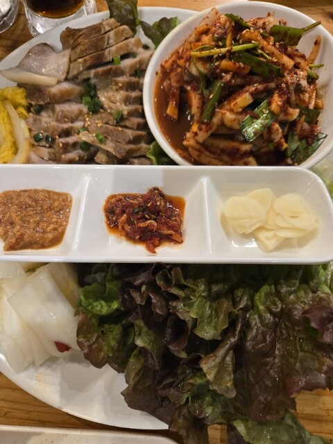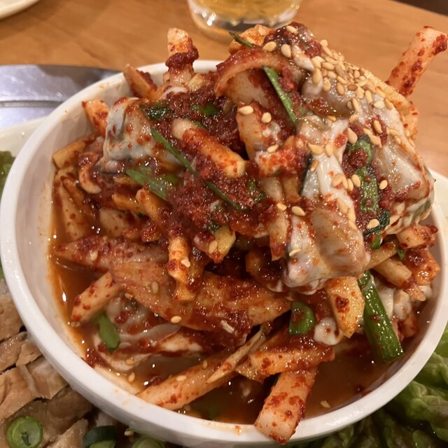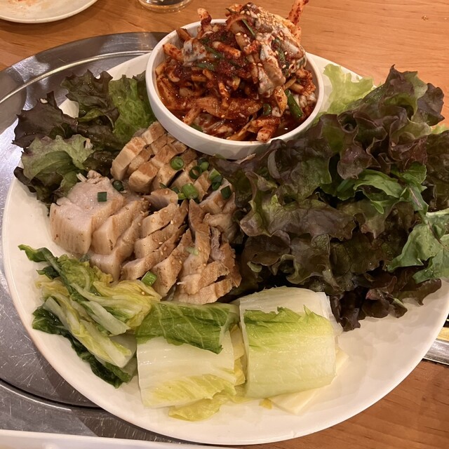 土曜日13時半から予約して行きました! お店は新大久保駅から歩いてイケメン通りの次の道だったので分かりやすかったです。 新年会だったのでまずはビールで乾杯 おかずはキムチ、もやしのナムル、レンコンをマヨネーズで和えたサラダ、キャベツのナムル (追加のキムチは有料でした。このご時世仕方ないです... 詳細を見る