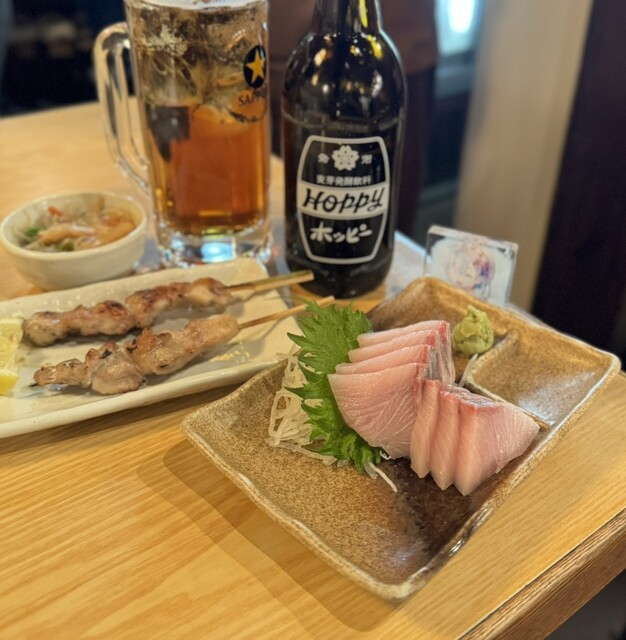 ◼️創業明治35年の酒類卸直営。カウンター、テーブル、座敷があるワイガヤな人気店。メニューも豊富で使い勝手が良い。 ◆寒ブリ刺し(日替わり) かなり脂が乗っている良い品。 ... 詳細を見る