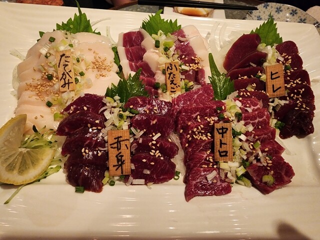 熊本直送の新鮮な馬刺し、揃えています。色々な種類をご用意してるので食べ比べも出来ます!