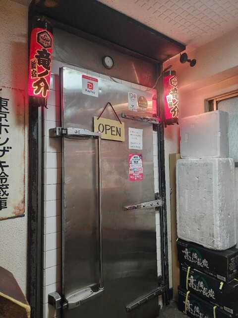 業務用冷蔵庫の扉のような入口が印象的で、隠れ家のような雰囲気。コロナ禍の時期に先代から継承されたそうで、以前から人気のもつ鍋に加え、現在は馬刺も看板メニューとして提供されています。... 詳細を見る