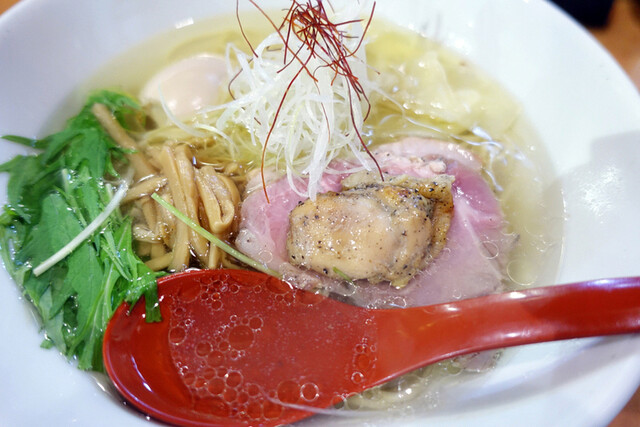 食べログ百名店に8年連続選出されてる 「麺屋 翔 本店」さんに2年振りに行ってきたで! 平日お昼の13時頃に行ったんだけど、 やっぱり人気店だけあって少し並んだよ! まずは定番の"軍鶏特製塩ラーメン" 透き通ったスープが美しすぎる〜 一口飲んだ瞬間、軍鶏の旨味がふわっと広が... 詳細を見る