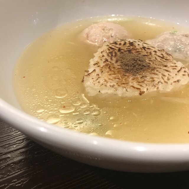 スープは 澄んだ透明の塩清湯スープ。その日は鯛・穴子・鰤、鮭のアラ(...