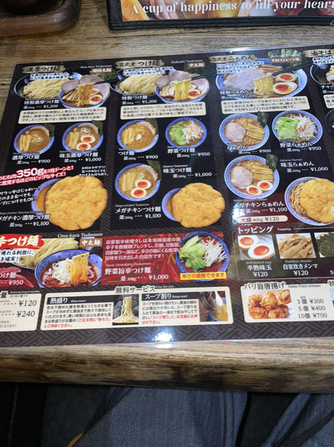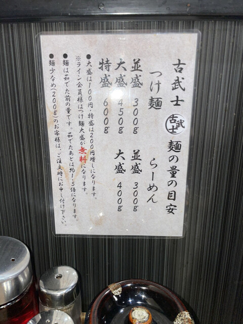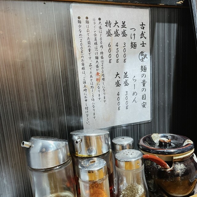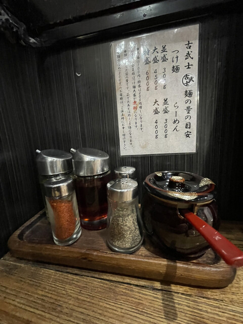 うれしいかぎりです。特製古武士つけ麺・特製濃厚つけ麺どちらがお好みでしたか?卓上の調味料も