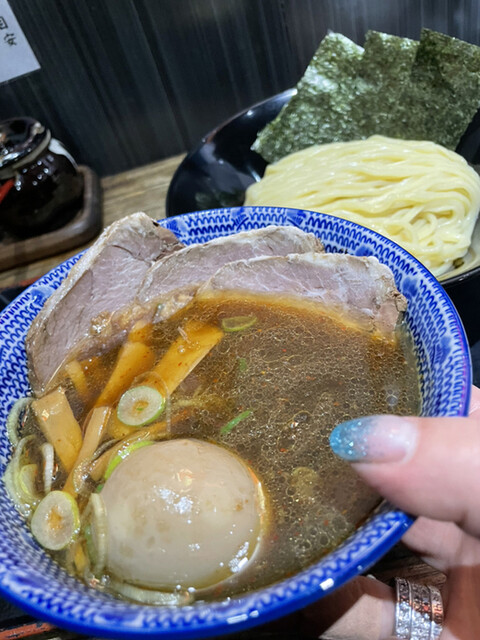 つけ汁には、煮卵メンマ、ネギ、