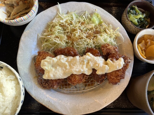 豚の衣はガリガリ系じゃなくて、全体的にしっとり柔らかめで食べやすいタイプだった。ネギとキャベツで後味が重くなりすぎず、ご飯と汁物、小鉢も付き。