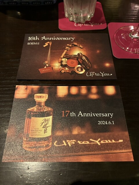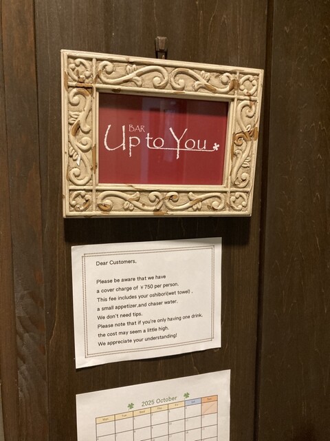 JR新宿駅西口から徒歩3分の、雑居ビルの7階にある小さなバーです☆気兼ねなく寛げる雰囲気の中で、美味しいお酒をお楽しみ頂けます。スタンダードなカクテルやウイスキーはもちろん、珍しいウイスキーに出会えることも。特に季節のフルーツカクテルには力を入れています。毎週変わるおすすめパスタをはじめ、フードメニューもこだわっています。お食事をされるもよし、グラスを傾けながら会話に花を咲かせるもよし・・・まさに...Up to You(あなた次第)な楽しみ方をしていただけるお店です!