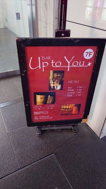 JR新宿駅西口から徒歩3分の、雑居ビルの7階にある小さなバーです☆気兼ねなく寛げる雰囲気の中で、美味しいお酒をお楽しみ頂けます。スタンダードなカクテルやウイスキーはもちろん、珍しいウイスキーに出会えることも。特に季節のフルーツカクテルには力を入れています。毎週変わるおすすめパスタをはじめ、フードメニューもこだわっています。お食事をされるもよし、グラスを傾けながら会話に花を咲かせるもよし・・・まさにUp to You(あなた次第)な楽しみ方をしていただけるお店です! |