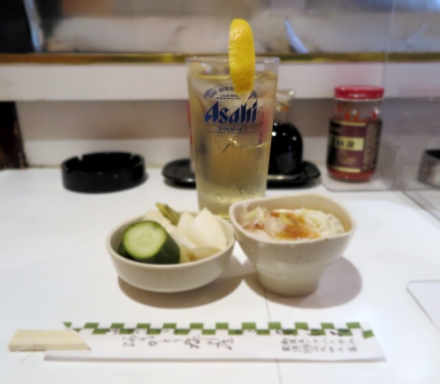 18時ちょい前にお店を開けてくれて、カウンター左端へ着席。