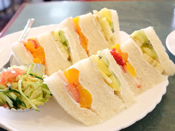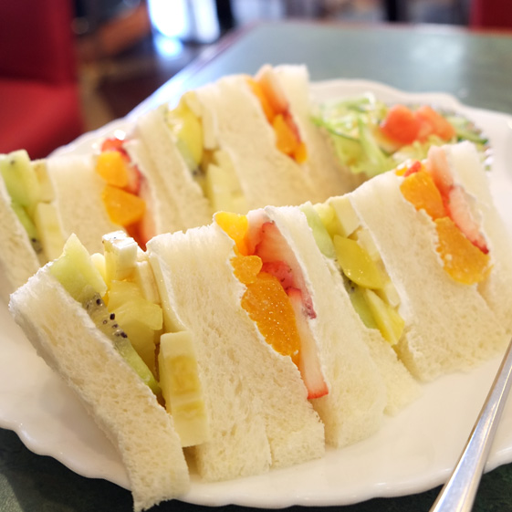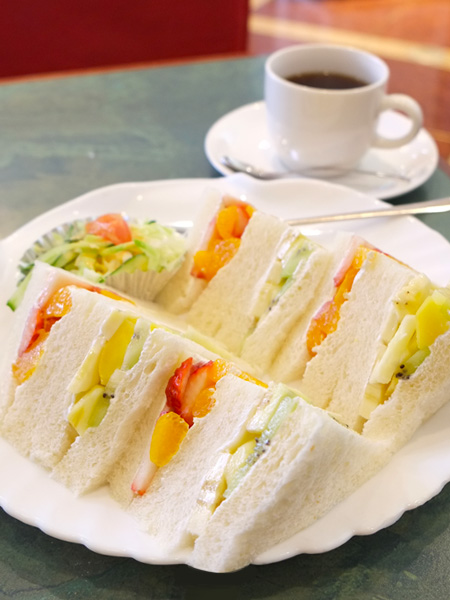仕事の合間にソロランチ。西新宿駅至近、青梅街道沿いのビル1Fに店舗を構えるカフェ。1995年オープン。フルーツショップ・カンノさんが手掛け、旬のフルーツをふんだんに使用したフルーツサンドが界隈のマダムワーカーに人気大爆発のお店だ。