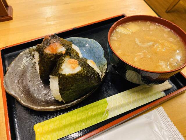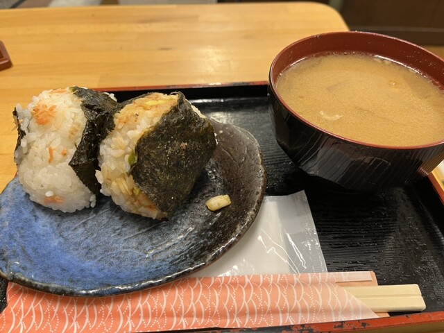 ◼️10種以上の手作りおにぎりと豚汁のセットがメインの和カフェ。どら焼きも手作り。アイランドイッツ内にある小さなお店。 ◆おにぎり 鮭&高菜 セット 海苔しっとりの手作りお... 詳細を見る