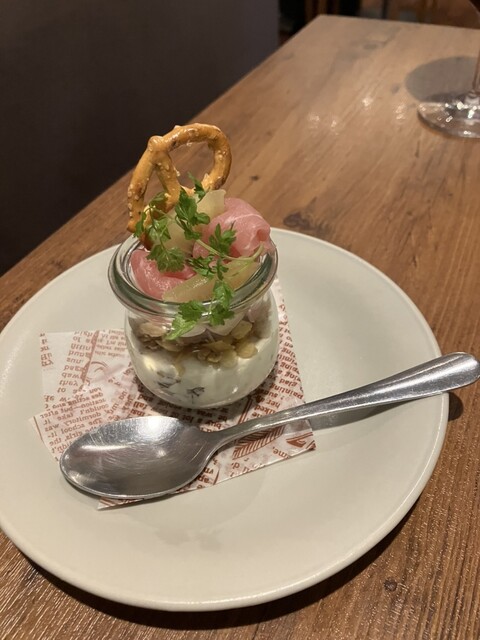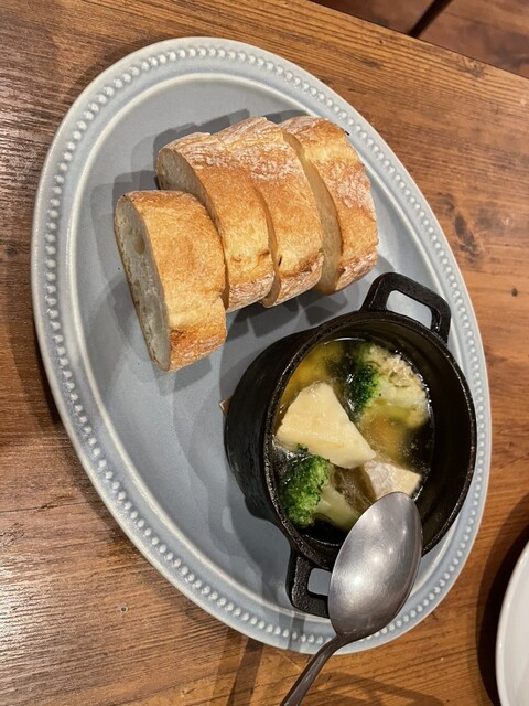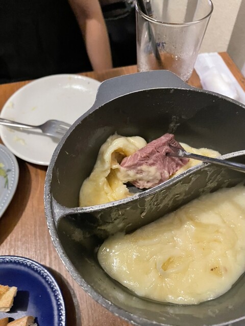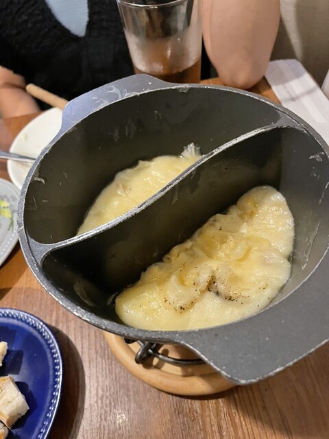 チーズフォンデュのプレミアム版を注文。ばっと見た感じ、チーズ足りる?って感じでした。結論、パンはお通しで使ったハチミツつけたり、そのまま食べたりして足りました。ただ、話しながら、休憩しながらだとすぐに...