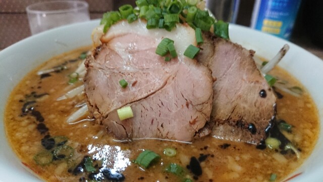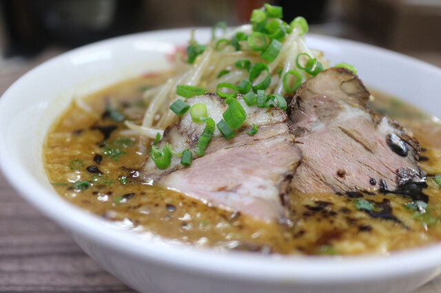 豚骨スープと独自にブレンドした北海道特製味噌、さらになんつッ亭秘伝の黒マー油が絶妙に調和した味噌らーめんです。このメニューだけのフレンチ流アレンジが隠し味。すくうと重みを感じる程の太麺はモチモチの食感。濃厚な味噌スープと程よく絡みます。 当店にしかない『なんつッ亭』ならではの味噌らーめんをご堪能下さい。