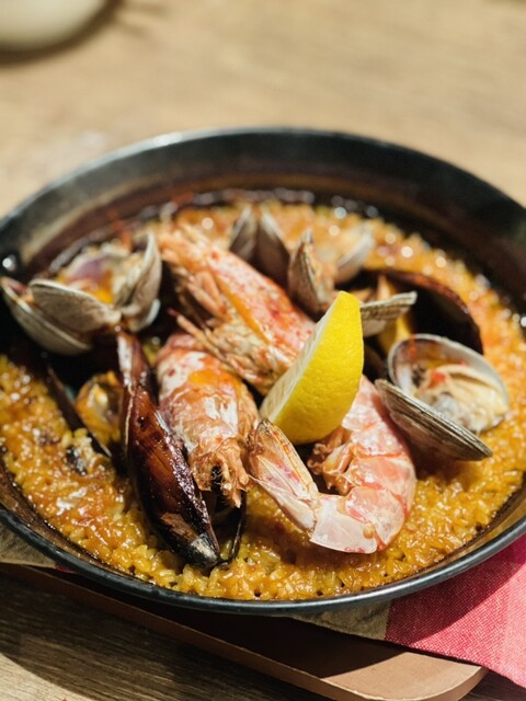 一番人気の『魚介たっぷりシーフードパエリア』を注文