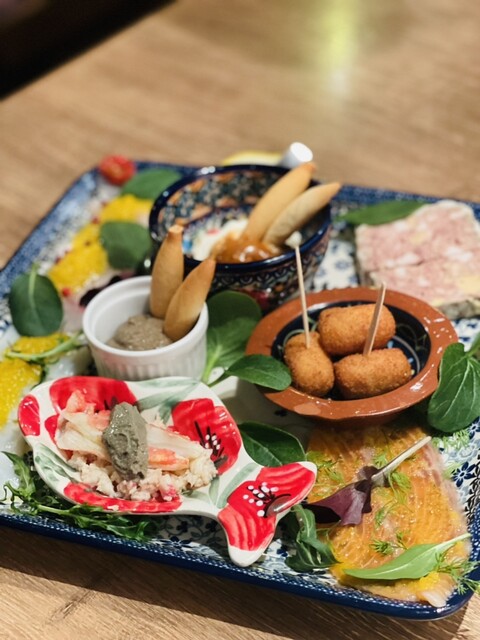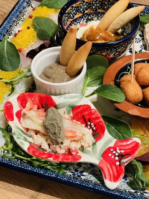 魚介類を中心して野菜や肉の料理や厳選ワインなも、シェフのこだわりのお料理があただけるスペインバル!