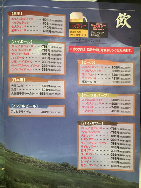 僕が訪れたのはそんなに遅い時間では無く通常メニュー。
