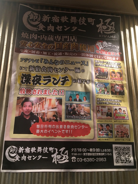 歌舞伎町の新宿区役所近くの内臓焼肉店「新宿食肉センター極」。