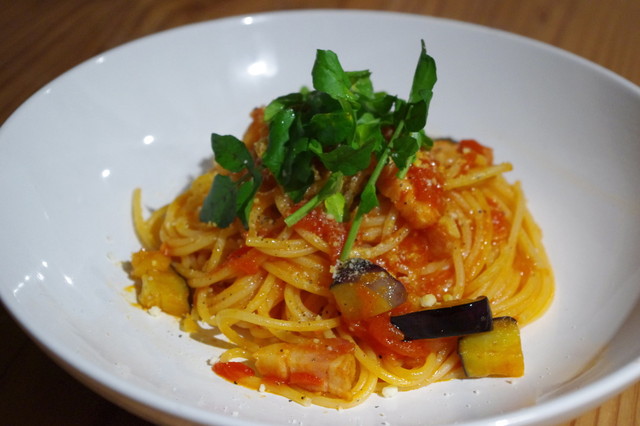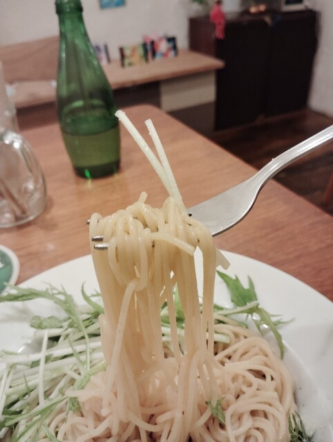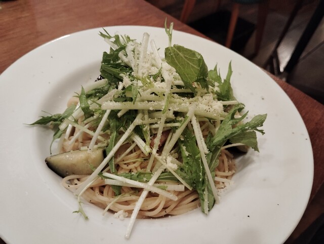 ベーコンと秋茄子のオイルソースパスタ(税込み1150円)。 14時台後半の訪問。スコッププレートが売り切れのため、こちらにしました。初めにスープとサラダが提供されました。パスタには粉チーズと黒胡椒も。旨みと脂を存分に含んだ秋茄子はしっとりとしてやわらかく、ジューシー。薄切りなのに存在感は抜群です。... 詳細を見る