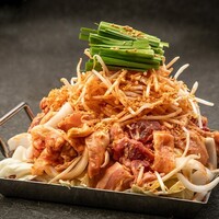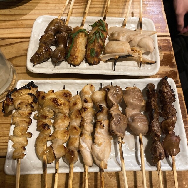 新宿駅東口から徒歩3分ほどの場所にあるお店。活気ある居酒屋の雰囲気が漂い、カジュアルながら落ち着いた空間❗️カウンター席やテーブル席があり、友人との食事や一人でも楽しめるアットホームな雰囲気!毎日新鮮な鶏肉を仕入れ、丁寧に焼き上げた焼き鳥がメイン‼️タレや塩のシンプルな味付けで、素材の旨味が際立っている❗️ 今回頼んだのは ▪️とんでもないボリューム!名物ホルモン焼き+〆の麺 2人前か... 詳細を見る