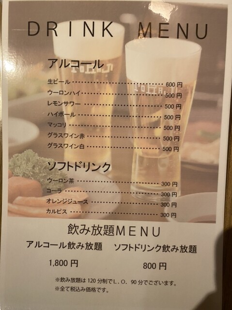 | ドリンク | 焼酎あり、ワインあり、カクテルあり |