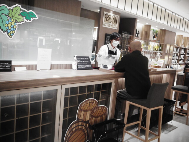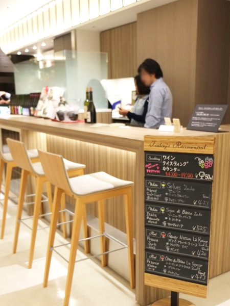 ワインバイヤー勝山晋作氏によりセレクトされたナチュラルワインの物販コーナー併設の有料テイスティングカウンター |