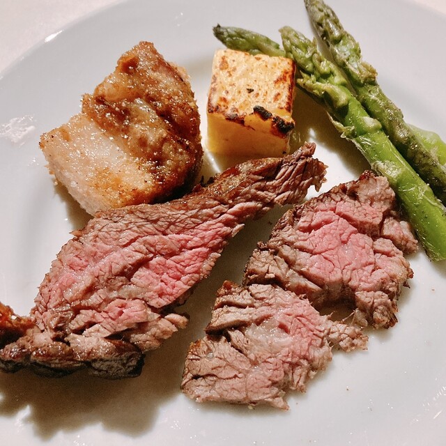 初めて訪問しました。 場所は新宿三丁目、少しわかりにくい。 オーダーしたのは120分食べ放題と飲み放題。 ルールはメニューを一周したら好きなお肉を オーダーできるシステムです。 お肉だけでなく、焼きパイン、チーズや 海老もあります。 海老はニンニクが効いていて美味しかった。 肉の中で... 詳細を見る