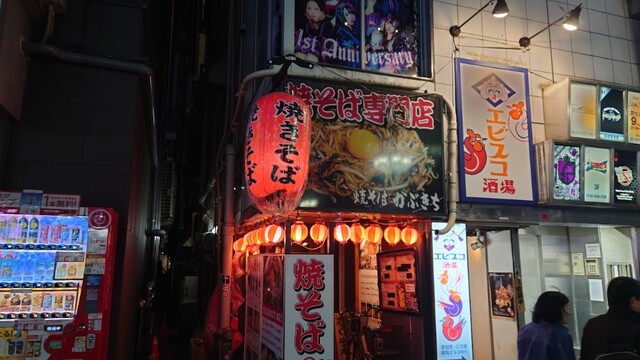 お店はビルの1階ですが、入口も店内も狭く、「焼きそば」の提灯があったからわかったけど、無かったら入れなかったと思います。