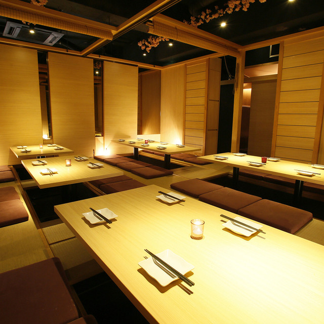桜散りゆく,華の宴を…九州料理の粋を極めた料理長が手掛ける うまかもんダイニング九州桜 新宿店OPEN♪ 新宿店は全席個室!団体様のご利用に最適です。 平日限定ドリンク&フード全品15%OFFキャンペーン実施中!◆最大3h飲み放題付コースを2480円からご用意!鍋付の豪華宴会コースも多数ご用意◆季節限定!ズワイ蟹など特選食材をしようした贅沢コースや逸品料理も◆各種お得なクーポン *新宿での各お祝い...に誕生日記念日特典ケーキ贈呈 *幹事無料クーポン実施中*土日月限定ドリンク&フード全品15%OFF*土日限定夏満喫企画!生ビール・ハイボール何杯飲んでも半額◆ランチタイムも営業◆飲み会や誕生日会に◆九州桜新宿店 個室席紹介 扉付完全個室有 2名席/20室 4名席/15室 6名席/12室 8名席/10室 15名席/8室 20名席/5室 40名席/4室 最大150名迄OK 各種宴会のご予約も承ります♪お気軽にお問い合わせください!