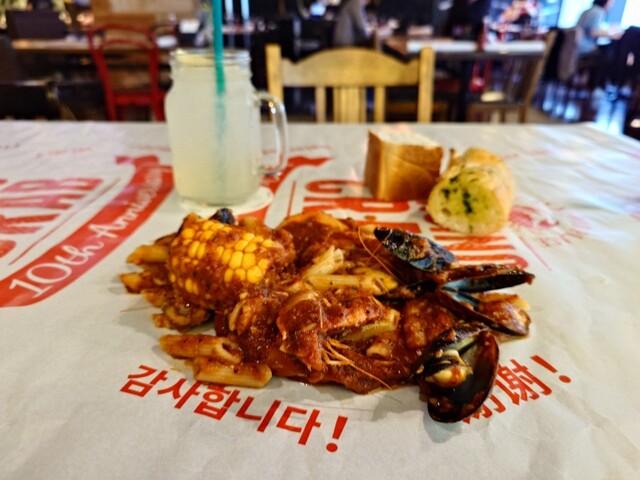 スパイシーな味付けのソースを絡めたシーフード「コンボバッグ」をテーブルの上に広げ、ナイフやフォークを使わず手づかみでワイワイ楽しく食べるというワイルドなスタイルが大好評!アメリカンシーフードレストランです。
