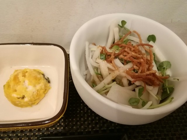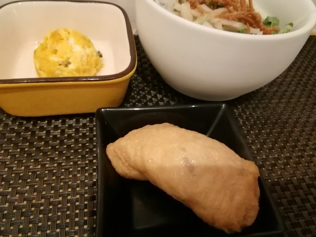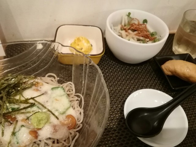 ネバネバ食材のぶっかけに大根サラダ、いなり付き