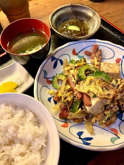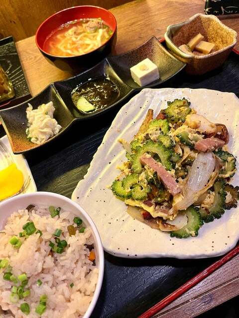 休肝日の平日、19時前に来店。予約無しの1人でも気持ちよく「めんそーれー」と通してもらい、カウンター席へ。 お酒を飲まないので前回気になっていた「夜の定食」をゴーヤーチャンプ... 詳細を見る