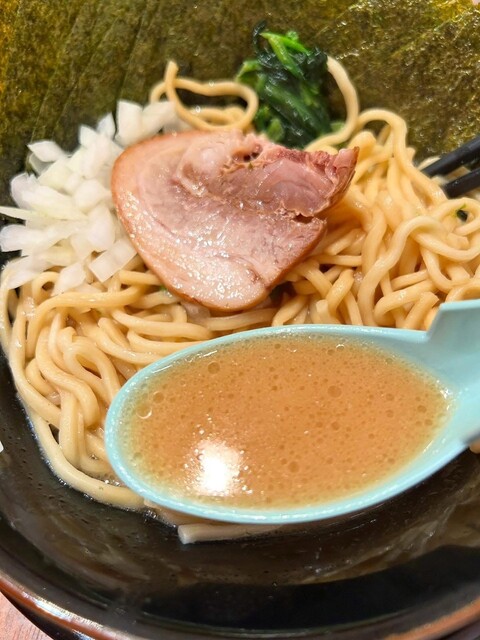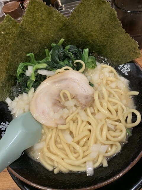 新宿西口にある家系ラーメン、何店舗かあるうちの一つに入店。キャンペーン期間だったのか、かなりお得な値段設定になっていたので、塩ラーメンを注文。裏切らない美味しい味で、スープを薄めにしたこともあり、背徳...