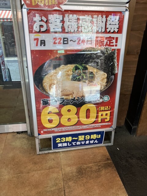 今回は家系ラーメン醤油を注文。ご飯は以前は終日無料だったようですが、物価高の...