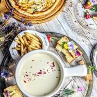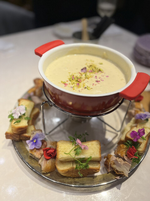【フラワーチーズフォンデュプラン】お花の前菜+フラワーチーズフォンデュ+選べるメイン料理+スイーツ付