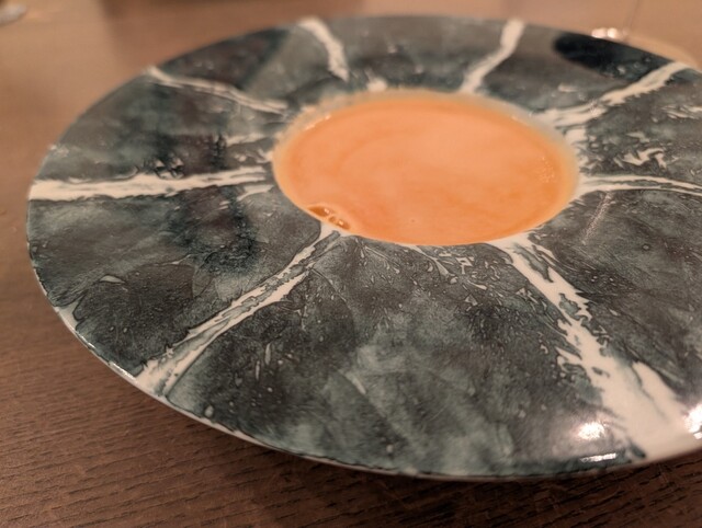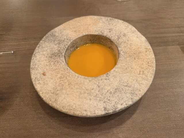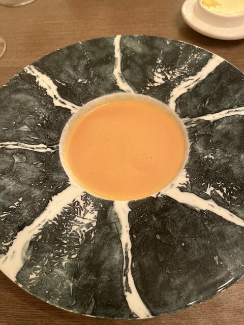 調理直前に見せていただいたオマール海老を、水と塩のみで短時間抽出したス...