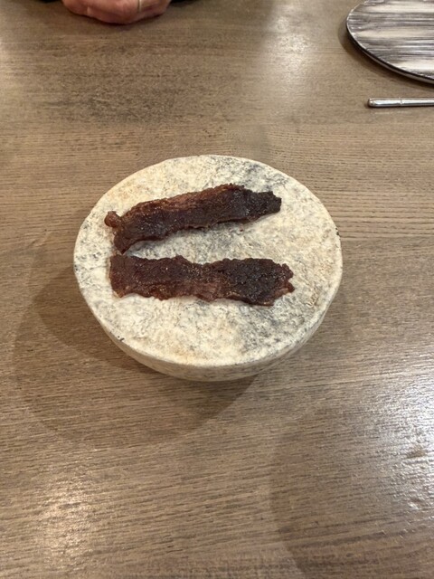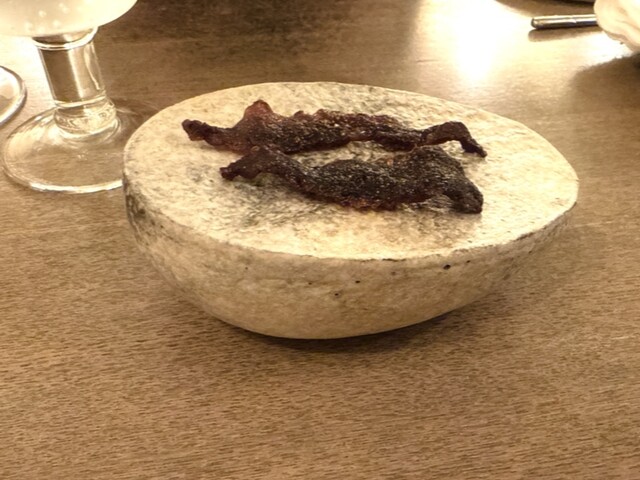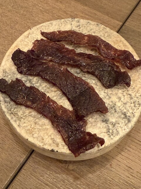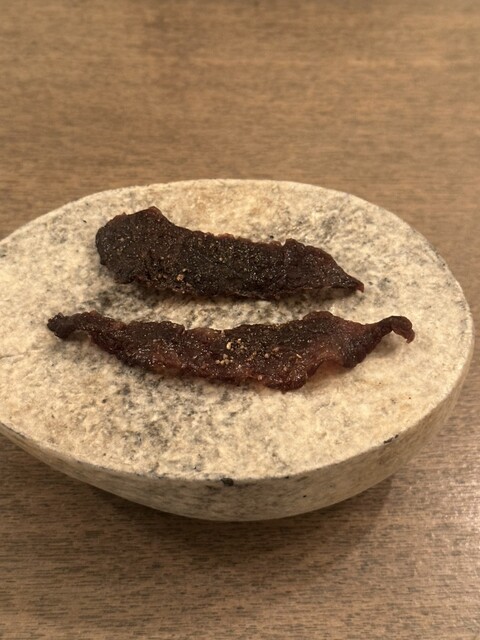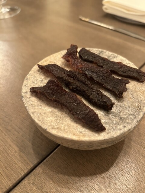 三島牛のビーフジャーキーから始まるコース。