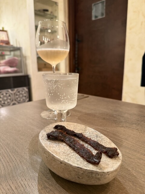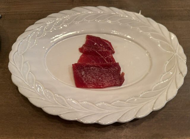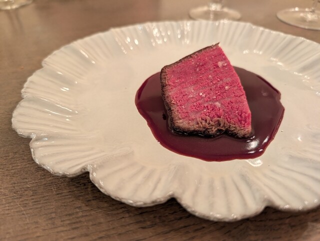 かなり前からチェックしていたお店です。グルメフーディーの来栖さんのお店です。omakaseだと店名ダニュという店名でステーキコースを予約して友人とお邪魔しました。素材重視で調味などをほとんど使わないことは知ってましたが、実際に体験して感動しました。来栖さん曰く引算の料理だそうです。この日はご自身で釣ったクロマグロがあるので勧められ、こちらを追加オーダーしました。どのお皿も大変素晴らしかったです。一...