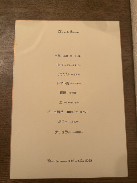 ボニュで体験したのは、これまで積み重ねてきたフレンチやイノベーティブというジャンルそのものを、静かに、しかし完全に無効化されるようなはじめての体験だった。